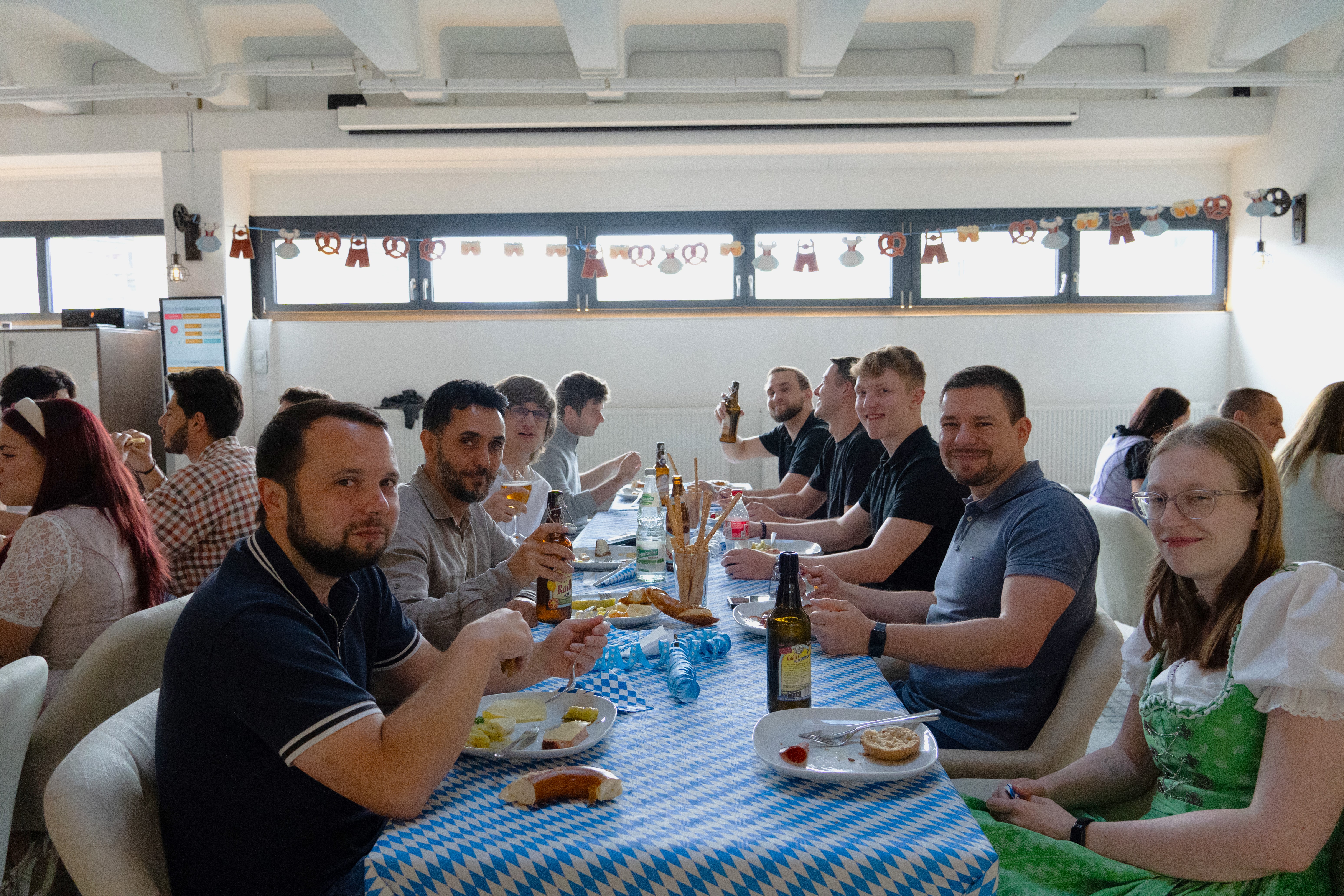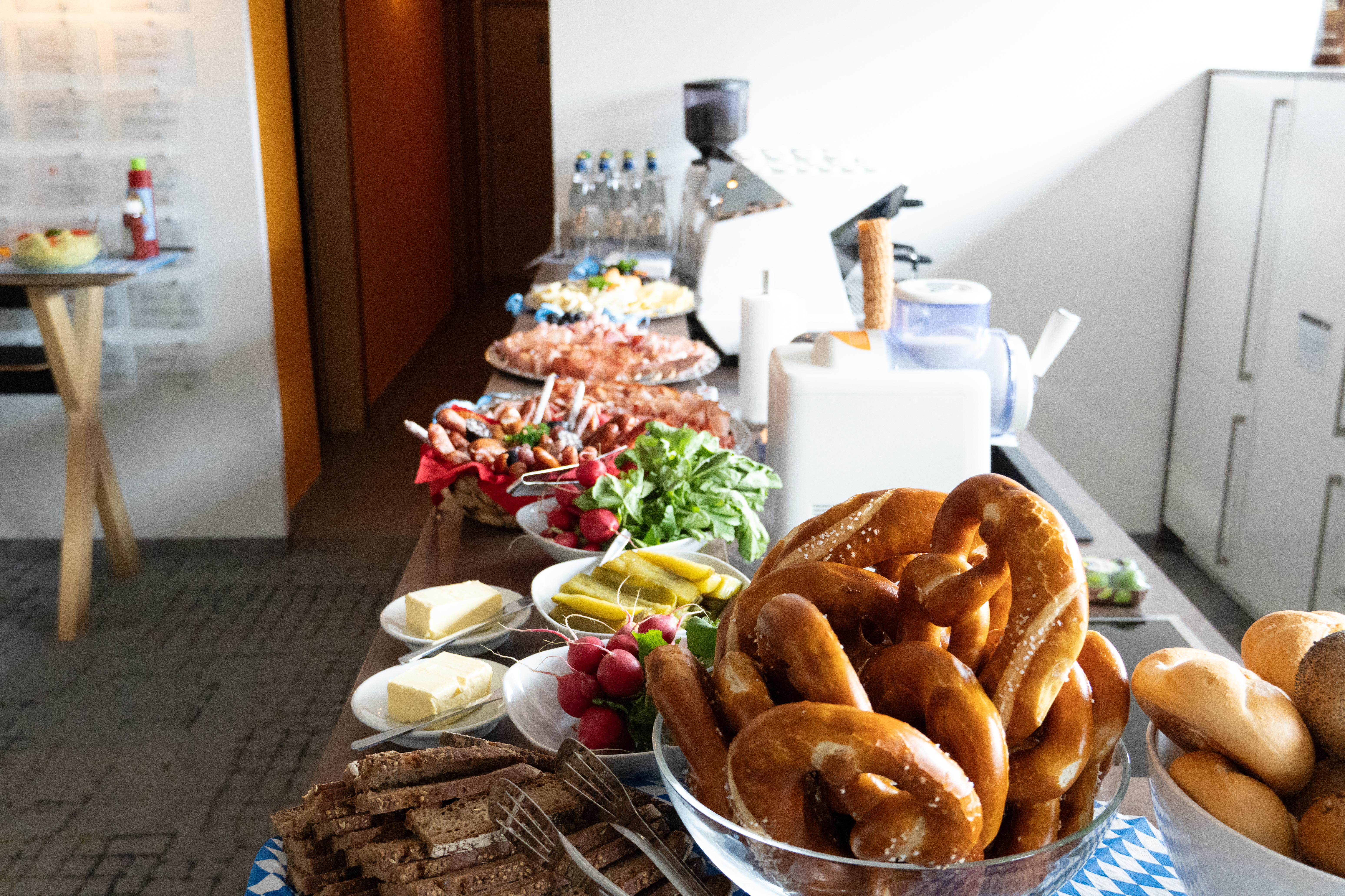 Der Abend begann für unsere Unternehmensgruppe mit einem gemütlichen Beisammensein an der Coffeebar. Bei Leberkäse, Brot, Aufschnitt und verschiedenen Käsesorten kamen wir in entspannter Runde zusammen, lachten viel und stimmten uns auf das Fest ein.