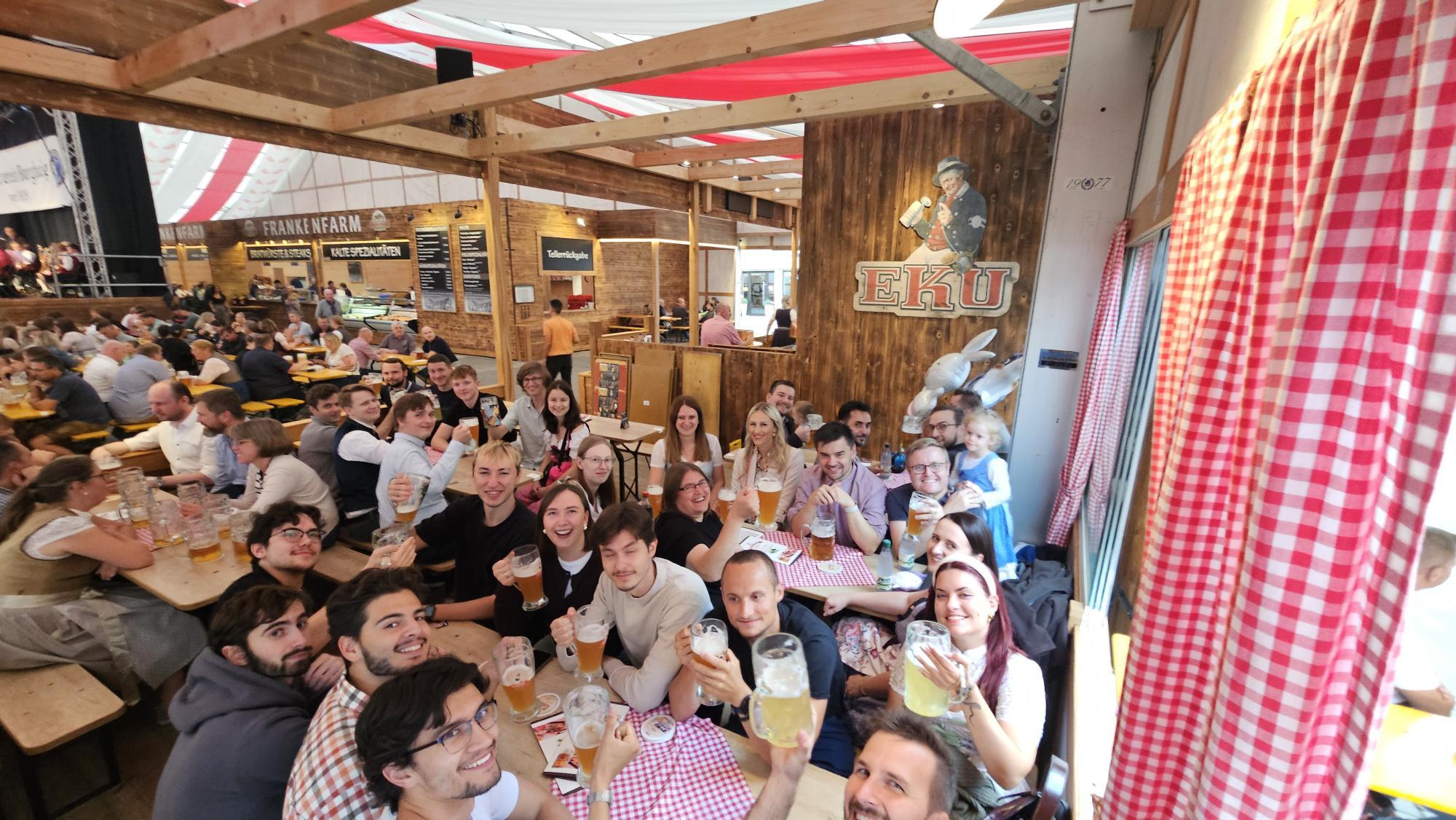 Gestärkt und in bester Stimmung machten wir uns anschließend gemeinsam auf den Weg ins Festzelt. Dort erwartete uns die besondere Atmosphäre, die die Kulmbacher Bierwoche seit Jahrzehnten ausmacht: mitreißende Musik, geselliges Beisammensein, fränkische Tradition und natürlich das berühmte Kulmbacher Bier.